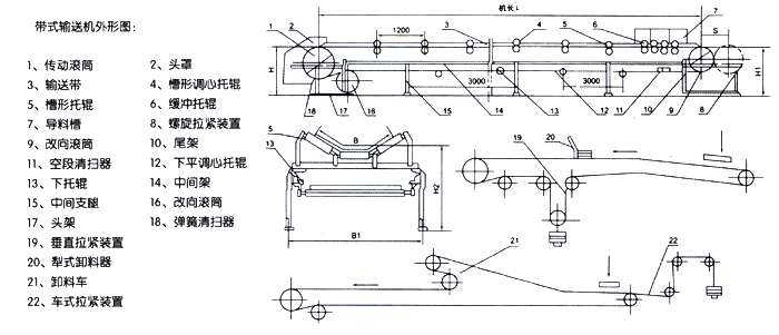 托輥是用無縫鋼管制成,類型有:槽形、平行,調(diào)心,緩沖四種,拉緊裝置:螺旋式拉緊裝置適用于長度較短(小于100m),行程有500m、800m、100mm三種;垂直重錘拉緊裝置,可隨著張力變化靠重力自動補(bǔ)償輸送帶的伸長;重錘車式拉緊裝置適于距離較長,功率較大的輸送機(jī),其拉緊行程有2,3,4m三檔,固定絞車?yán)o裝置用于長行程大拉緊力(30-150KN),長距離,大運(yùn)量的帶式輸送機(jī),最大拉緊行程可達(dá)16m。